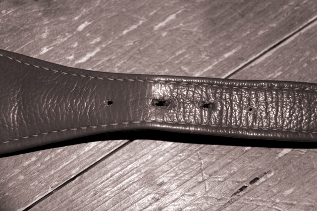 1. Nehmen Sie ein gut passendes Halsband und suchen Sie das getragene Loch