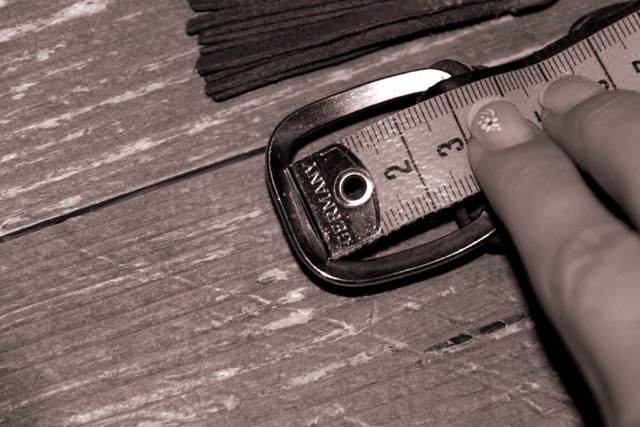 2. Dann setzen Sie das Maßband an der vorderen Innenseite der Schnalle an. Wir machen dies so, da sich die Größe der Schnalle auch auf die Länge auswirkt.